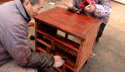 流程三雕刻工序 為了讓紅木家具看上去更美觀,在木工工序完成之后一般都會用一些或簡單或復(fù)雜的雕花來進行裝飾,也就是行業(yè)中所說的雕刻紋飾。雕刻紋飾必須在“認榫”完成后進行,因為“認榫”時需要修整,如果先做好雕花再開榫,紋理很難保證雕花部件都在同一平面上,而此時為了保證雕花...
